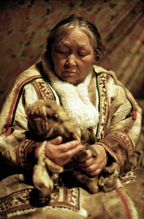 The leading role is that of an old Nenet woman called Syarda, her full name being Numd Syarda. The word Num means heaven and is also the name of the highest god of the Nenets. Syarda means tied to or imprisoned. So Numd Syarda literally means tied or spliced to Num.